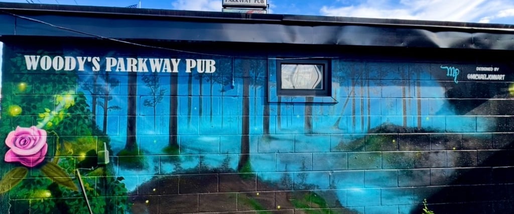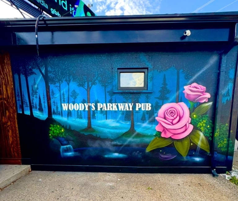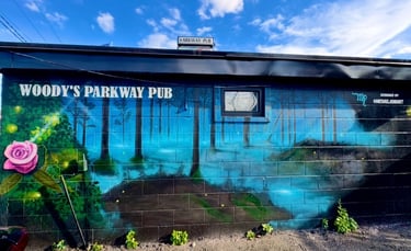 Wood’s Parkway Pub, located in Massachusetts, underwent a complete exterior remodel to modernize and redefine its visual identity. The project included the installation of new wood paneling, the transformation of the existing brick façade into smooth stucco, and the preparation of a large-scale exterior wall for a custom mural. The design was developed around a forest and woodlands theme, reflecting the pub’s name and atmosphere while creating a warm, inviting presence for guests and the community. The renovation successfully blended craftsmanship with creativity, setting the foundation for a distinctive and memorable streetscape feature.